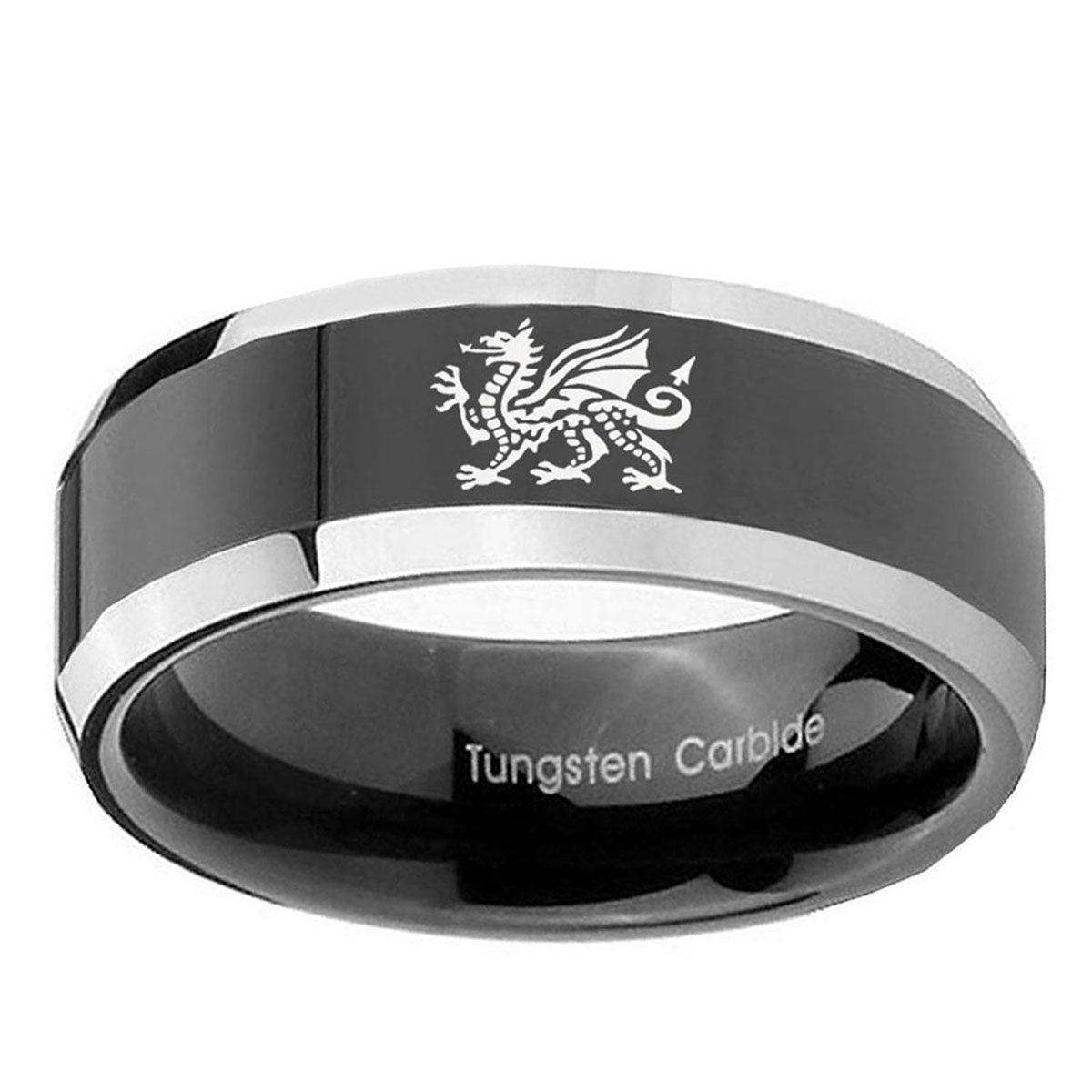 5, 8mm Dragon Beveled Edges Glossy Black 2 Tone Tungsten Carbide Engagement Ring