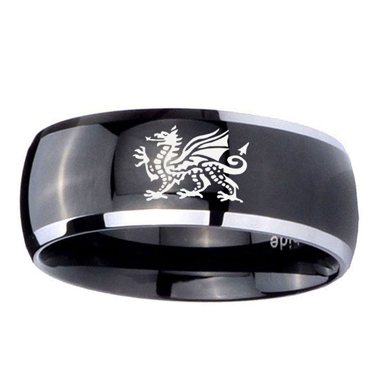 Style the 10mm Dragon Dome Glossy Black 2 Tone Tungsten Carbide Men's Band Ring. This glossy black and 2-tone dome ring with Dragon design is perfect for men.