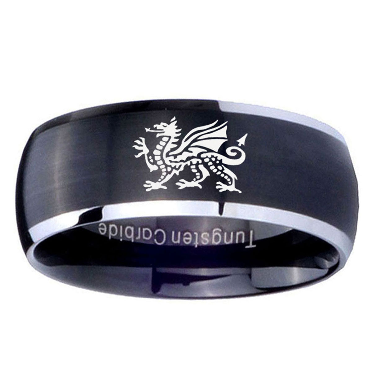 Introuding 5, 8mm Dragon Dome Brushed Black 2 Tone Tungsten Carbide Men's Engagement Band . Offer in both 5mm and 8mm band width brushed black plated fnished from size 4 to 14