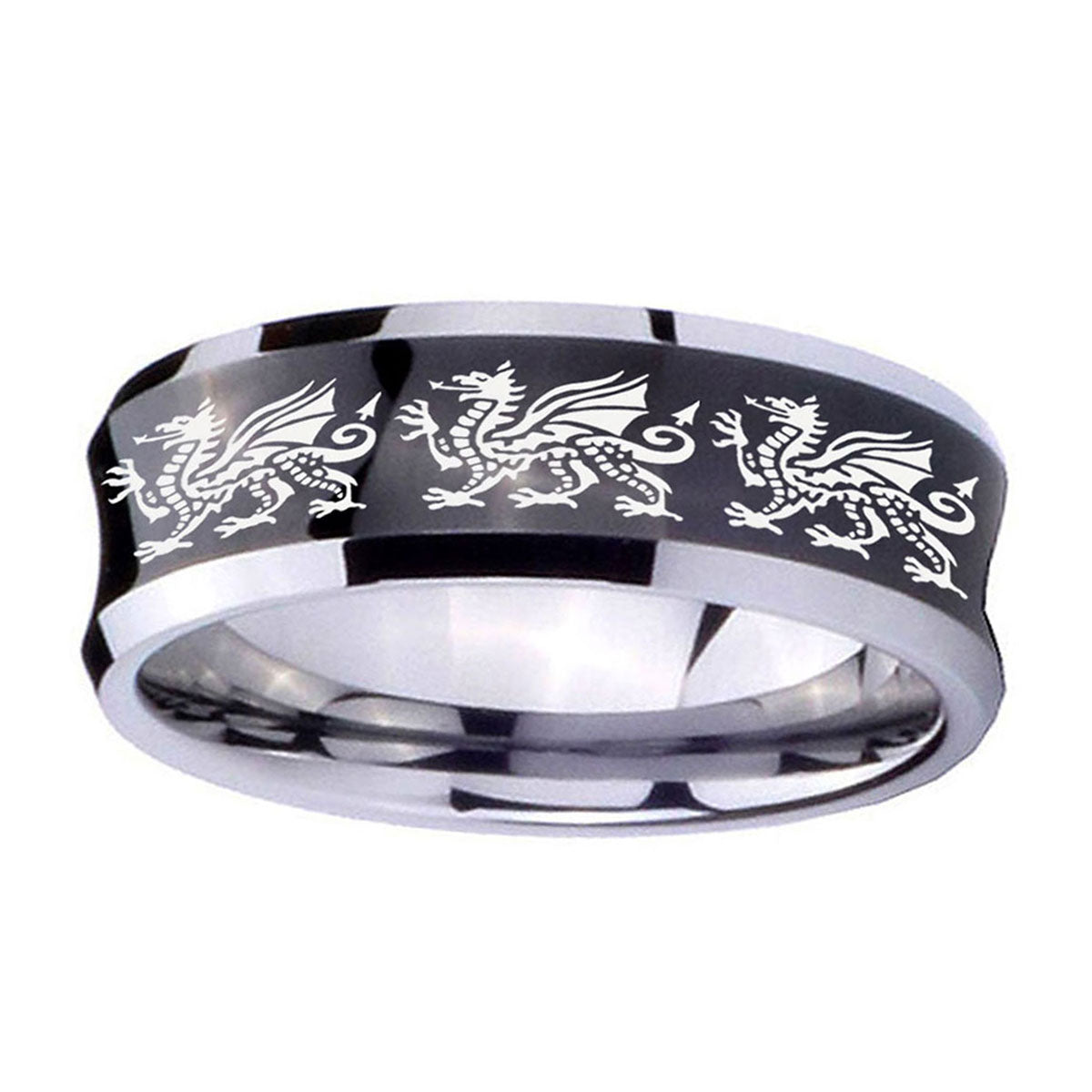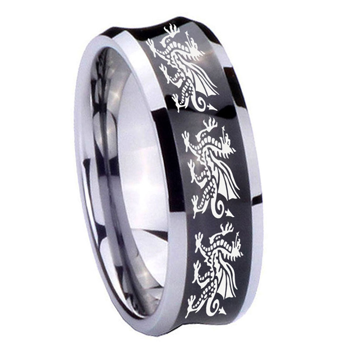 10mm Multiple Dragon Concave Black Tungsten Carbide Mens Promise Ring