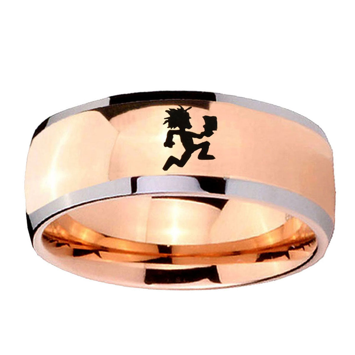 Introuding 5, 8mm Hatchet Man Dome Rose Gold Tungsten Carbide Men's Bands Ring . Offer in both 5mm and 8mm band width rose gold plated two tone finished from size 4 to 14