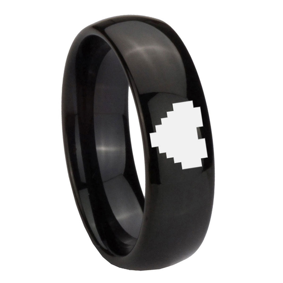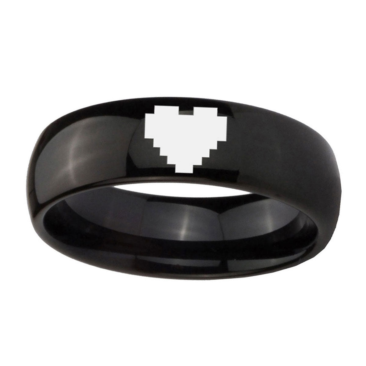 5, 8mm Classic Dome Zelda Heart Shiny Black Tungsten Laser Engraved Ring