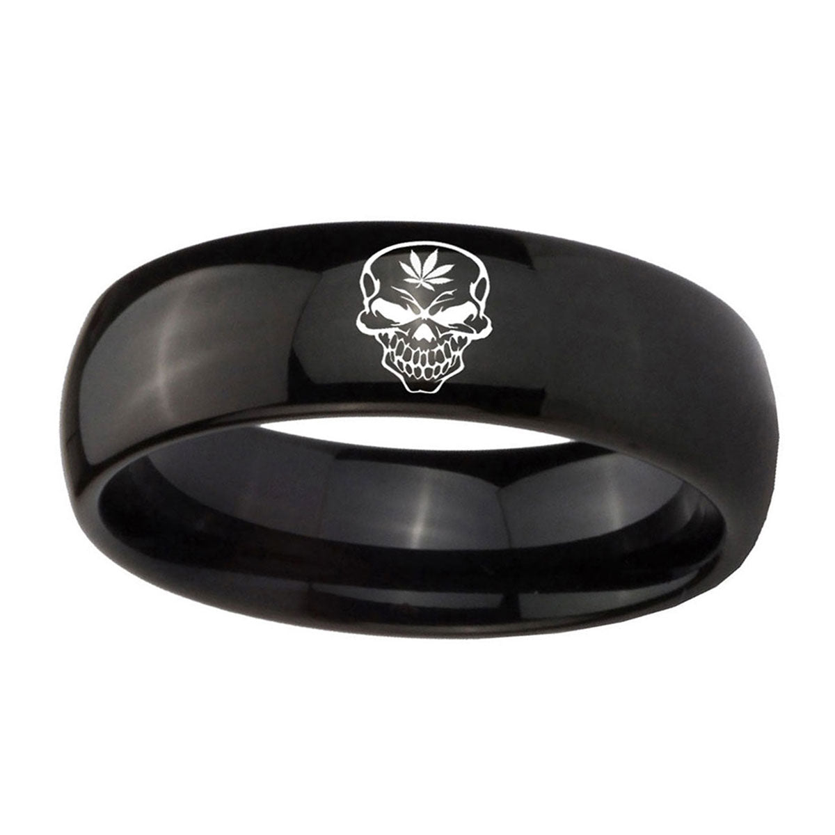 10mm Skull Marijuana Leaf Dome Black Tungsten Carbide Men's Promise Rings