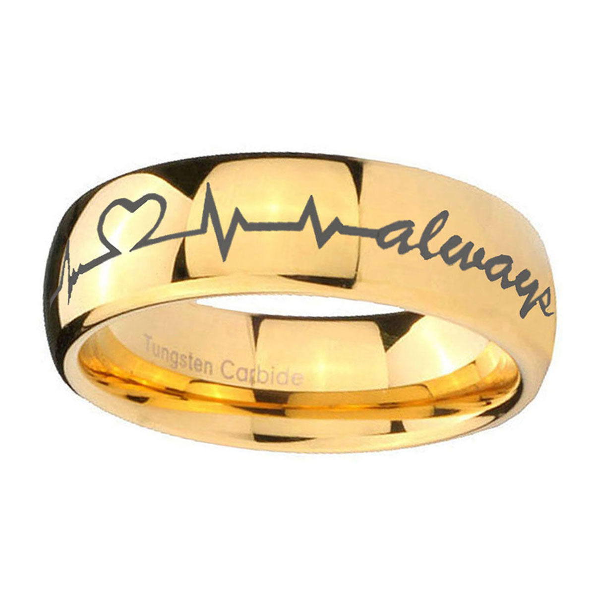Propose with the 10mm Heart Beat forever Heart always Dome Gold Tungsten Men's Engagement Band. This gold-finished tungsten ring with Heart Beat design is ideal for engagements.