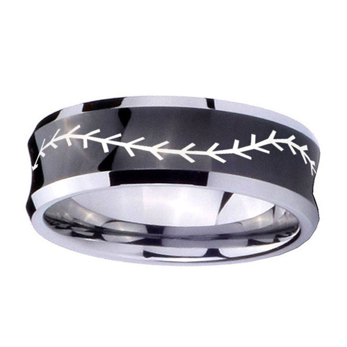 10mm Baseball Stitch Concave Black Tungsten Carbide Engraved Ring