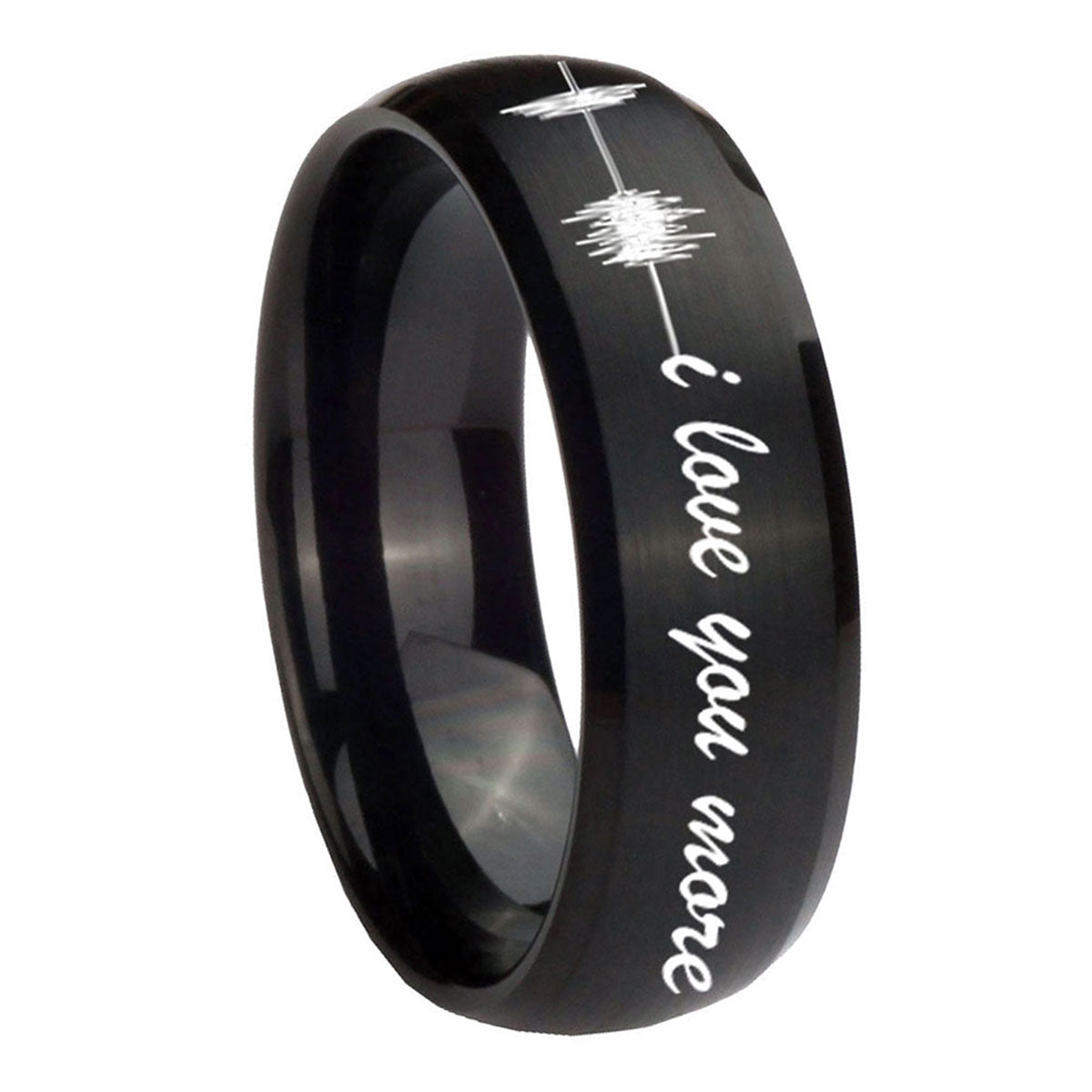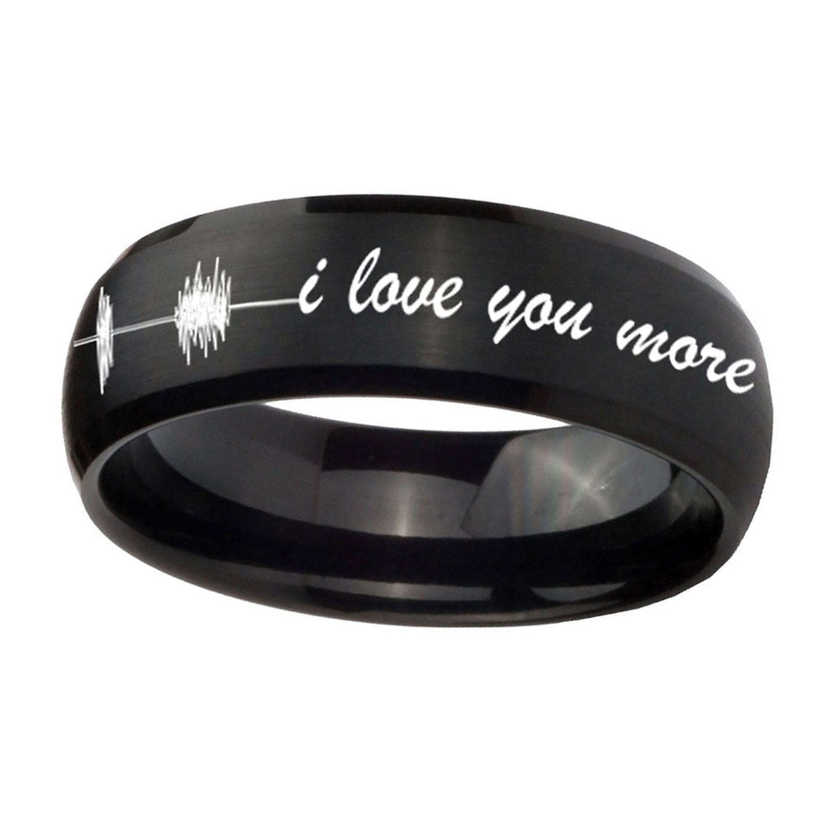 10mm Sound Wave, I love you more Dome Brush Black Tungsten Carbide Promise Ring