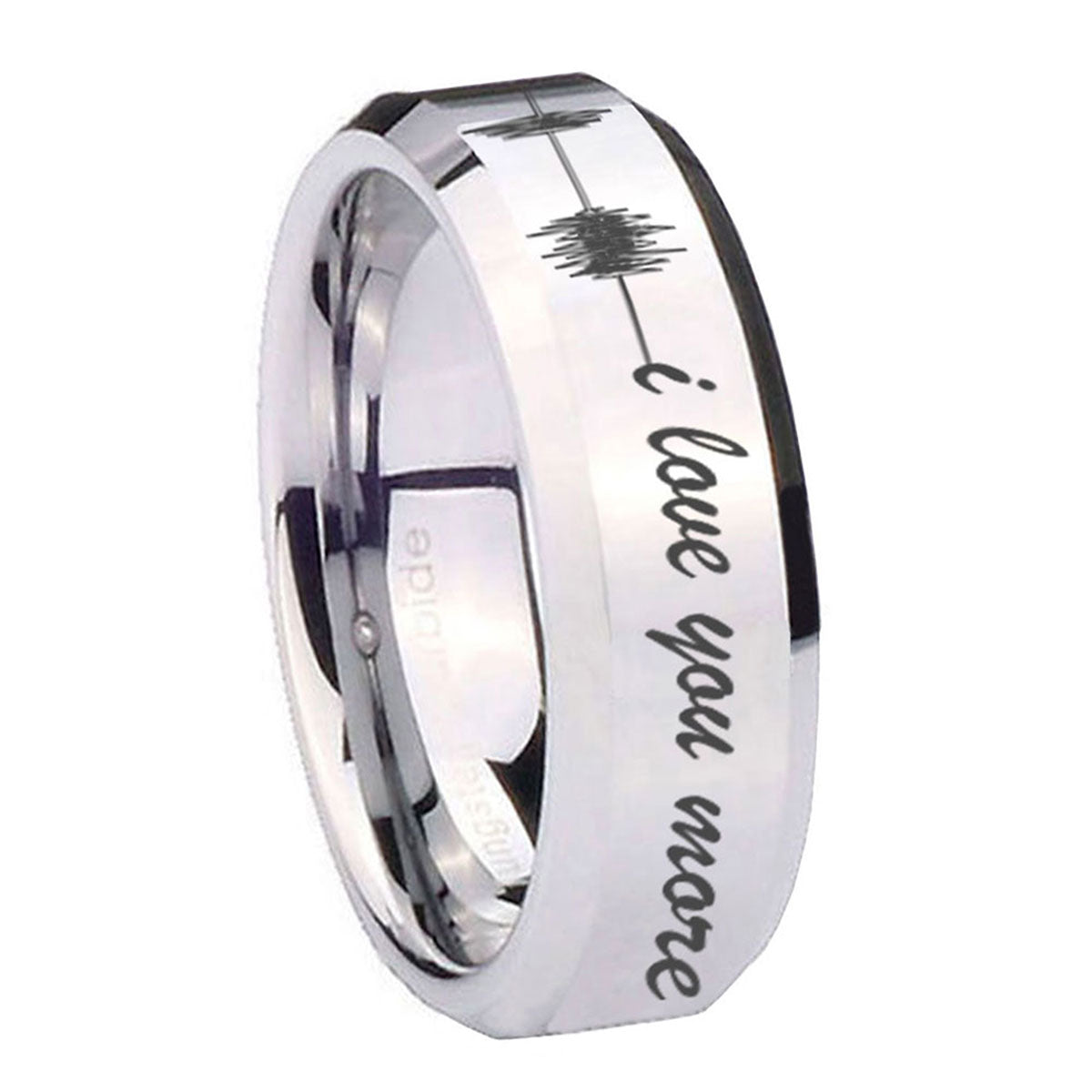 10mm Sound Wave, I love you more Beveled Silver Tungsten Wedding Engagement Ring