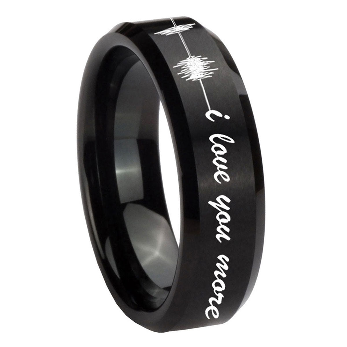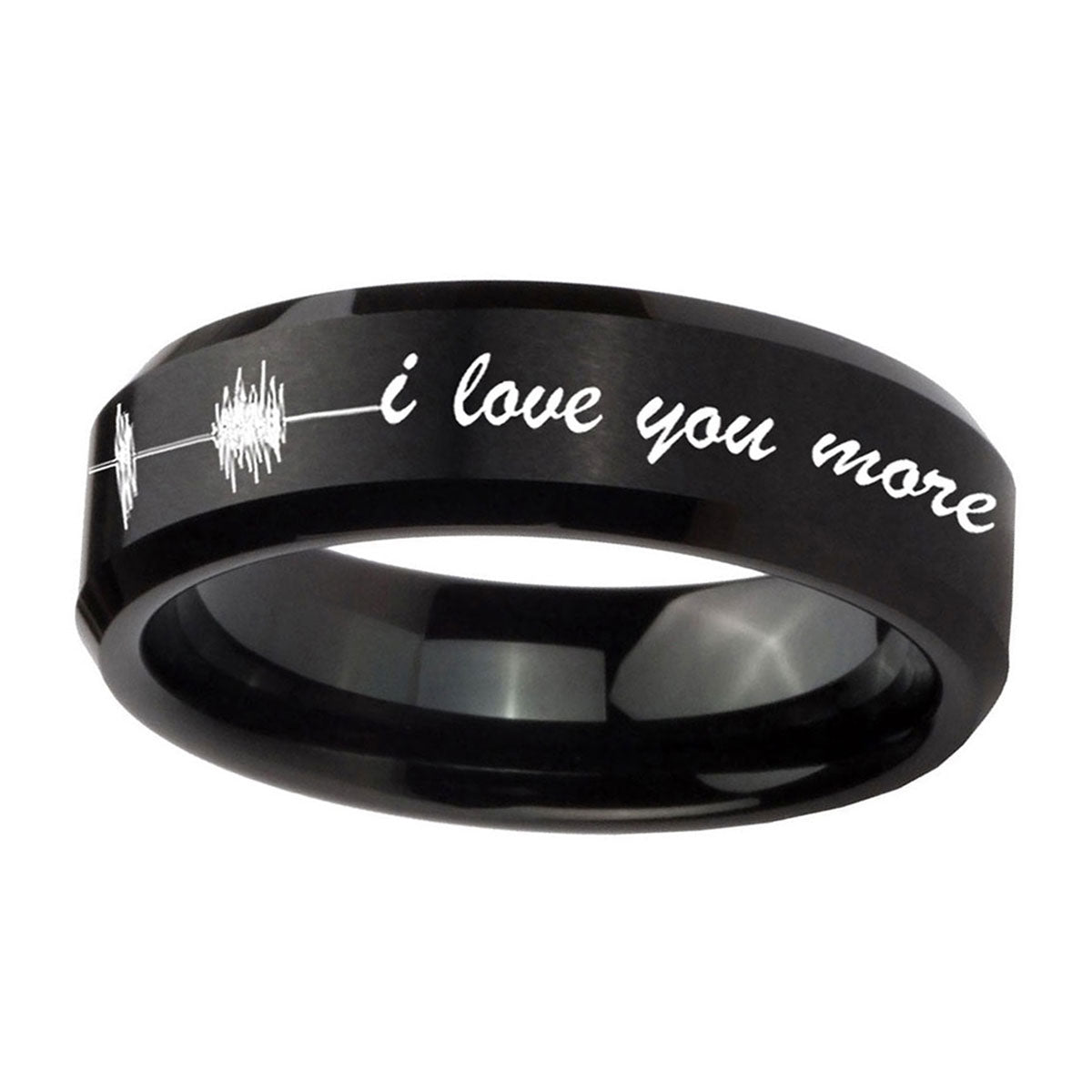10mm Sound Wave, I love you more Beveled Brush Black Tungsten Men's Bands Ring