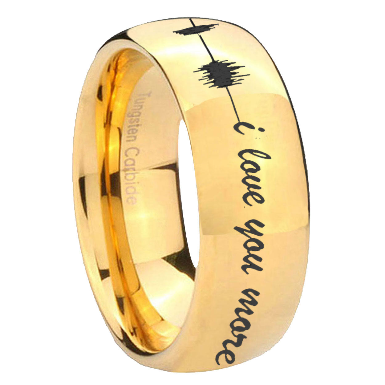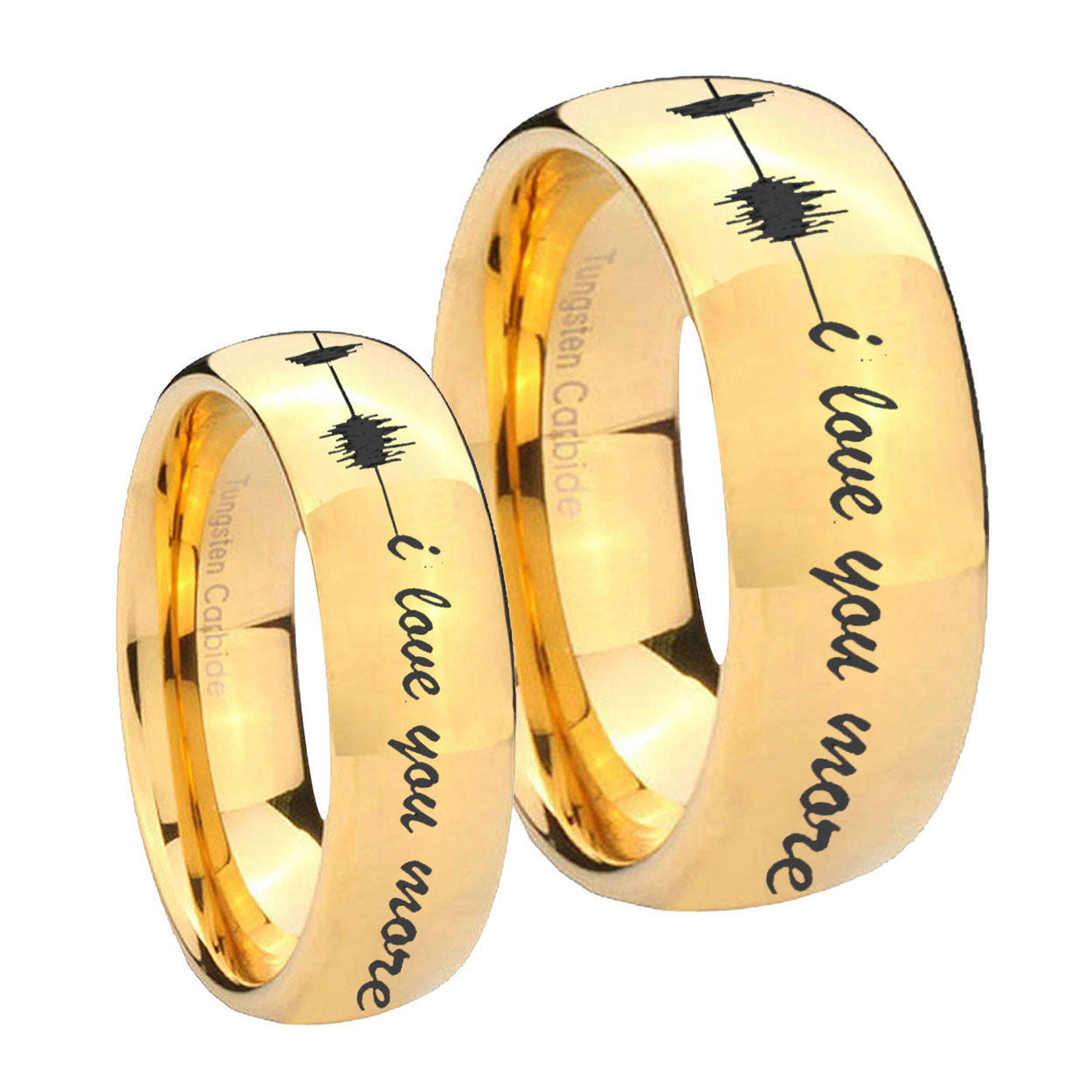 His Hers Sound Wave, I love you more Dome Gold Tungsten Wedding Bands Ring Set