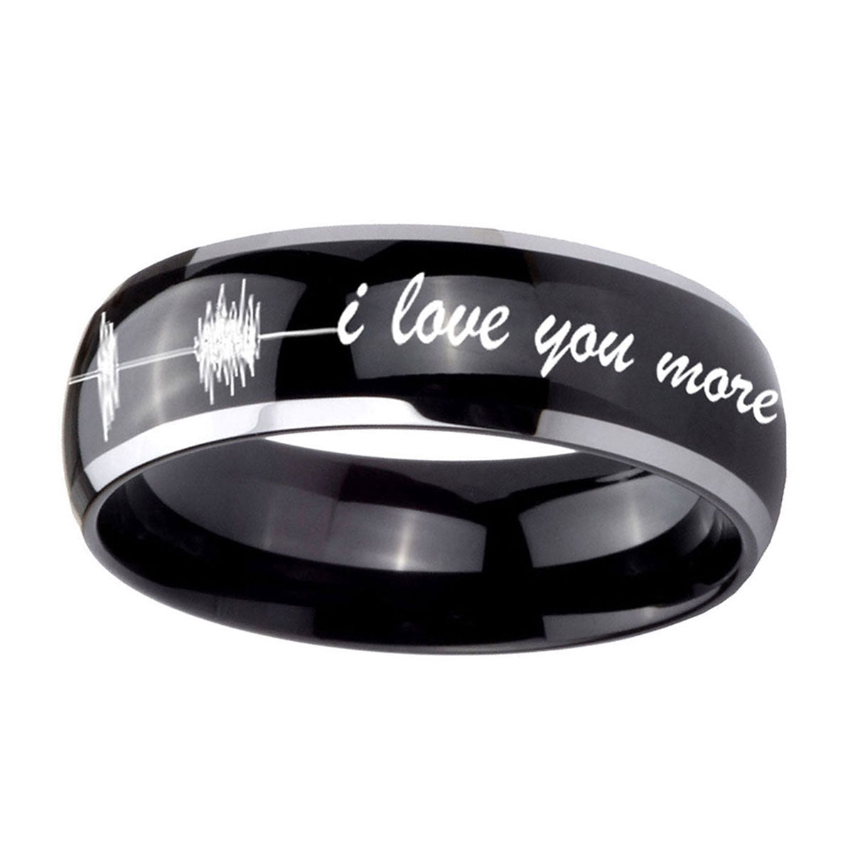 5, 8mm Sound Wave I love you more Dome Glossy Black 2 Tone Tungsten Men's Band Ring