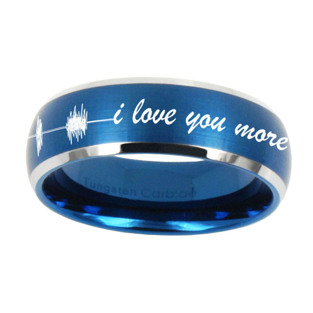10mm Sound Wave I love you more Dome Brushed Blue 2 Tone Tungsten Promise Ring