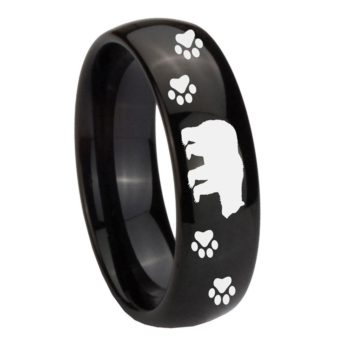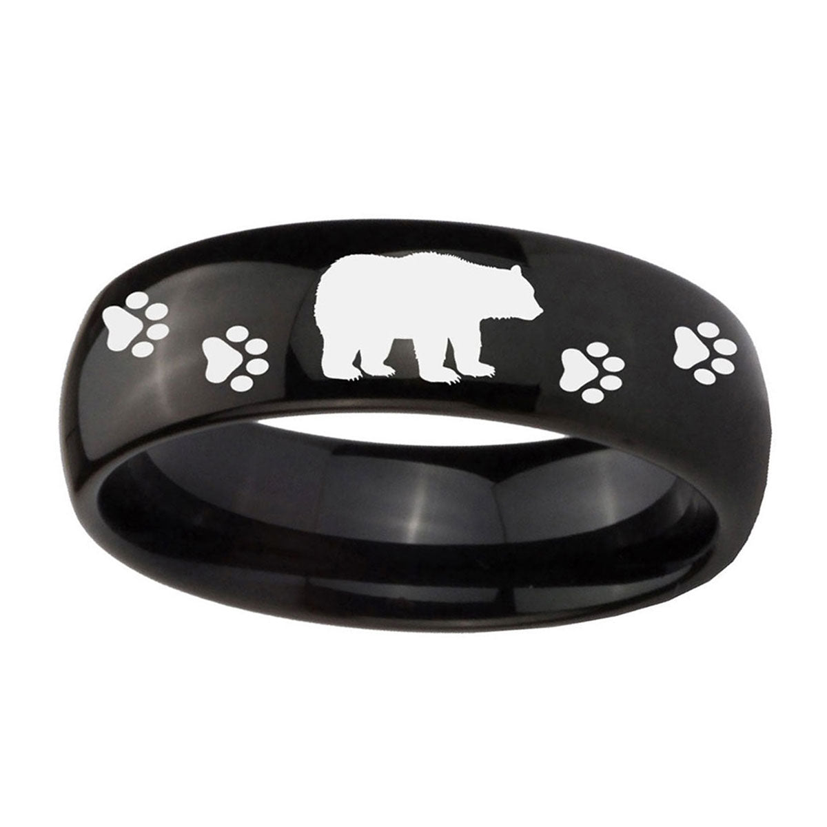 10mm Bear and Paw Dome Black Tungsten Carbide Wedding Band Mens