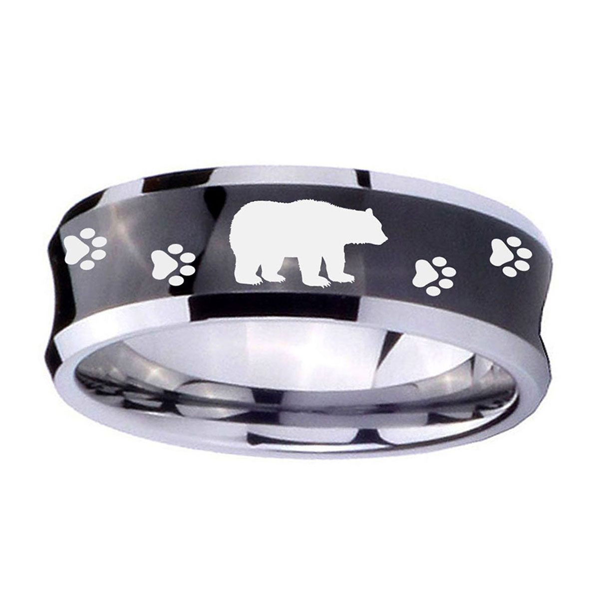 Make a bold promise with the 10mm Bear and Paw Concave Black Tungsten Carbide Mens Promise Ring. This concave black tungsten ring with bear and paw design is ideal for commitments and rugged style.