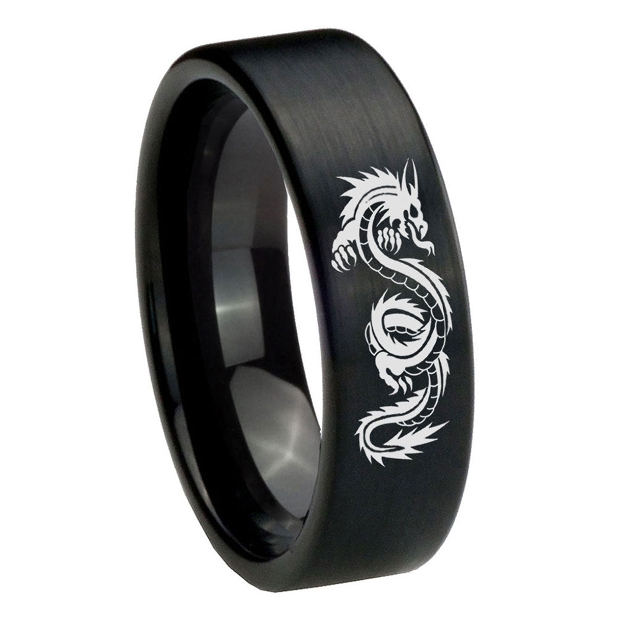6, 8mm Dragon Pipe Cut Brush Black Tungsten Carbide Personalized Ring