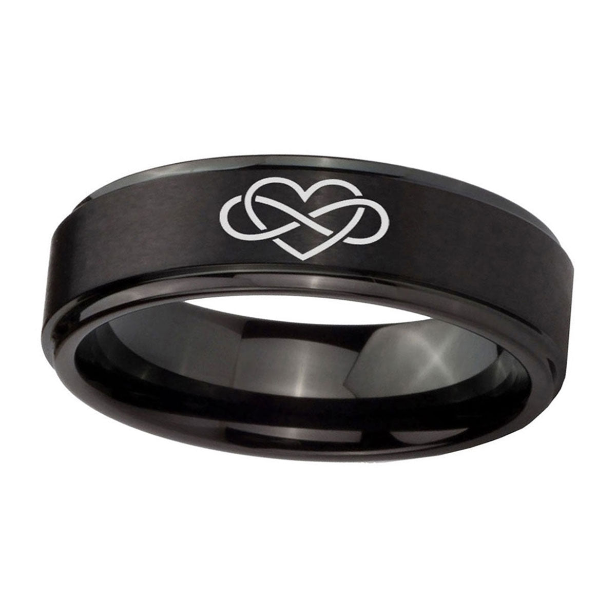 10mm Infinity Love Step Edges Brush Black Tungsten Carbide Engraved Ring
