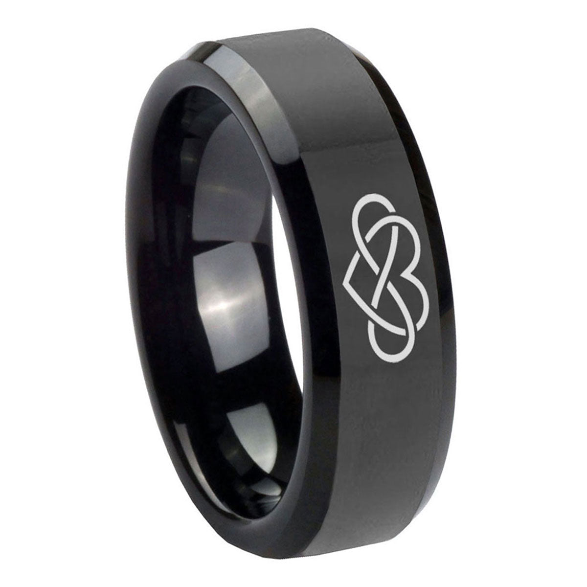 5, 8mm Infinity Love Beveled Edges Black Tungsten Carbide Mens Bands Ring