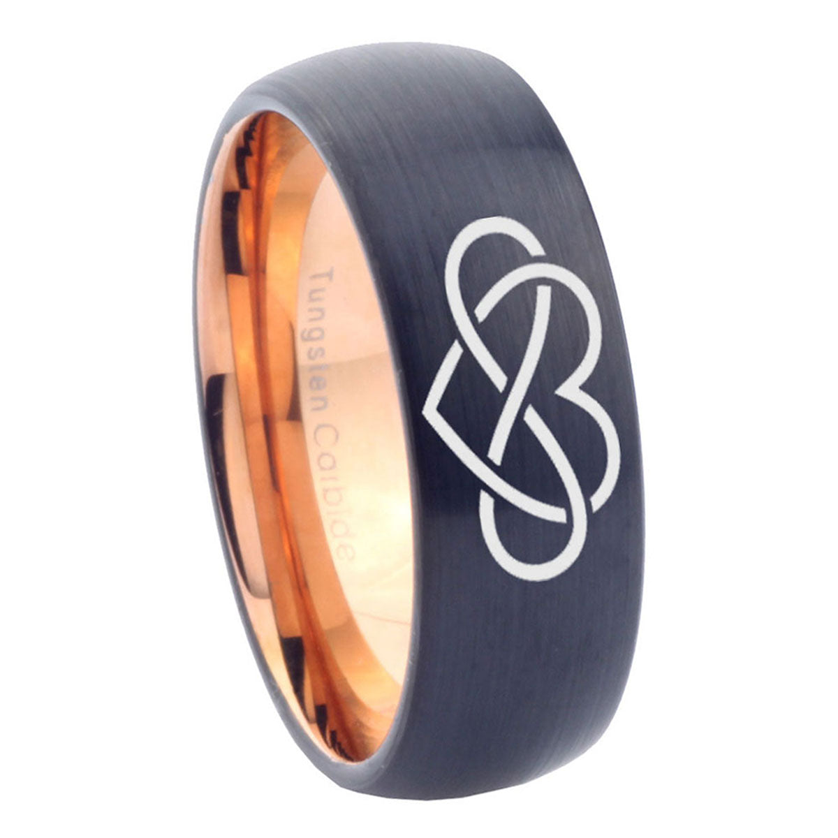 Introuding 5, 8mm Infinity Love Dome Tungsten Carbide Rose Gold Band Ring . Offer in both 5mm and 8mm band width black and rose gold plated finished from size 4 to 14