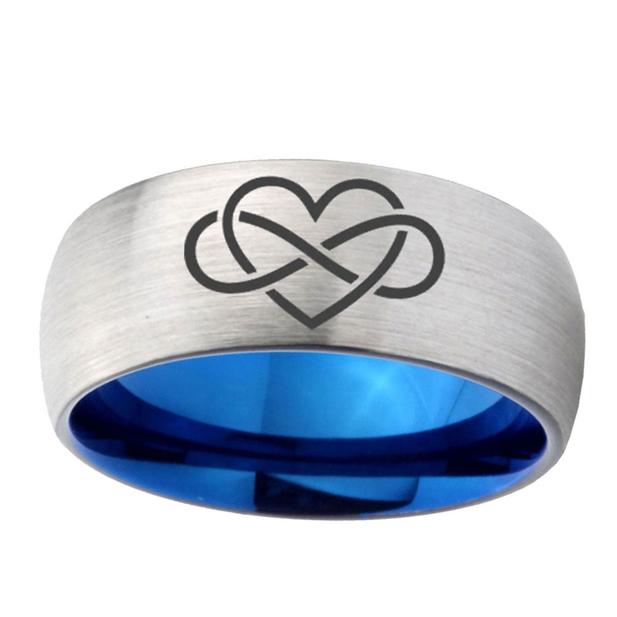 Introuding 6, 8mm Infinity Love Dome Tungsten Carbide Silver Blue Wedding Band Mens . Offer in both 5mm and 8mm band width silver and blue plated finished from size 4 to 14