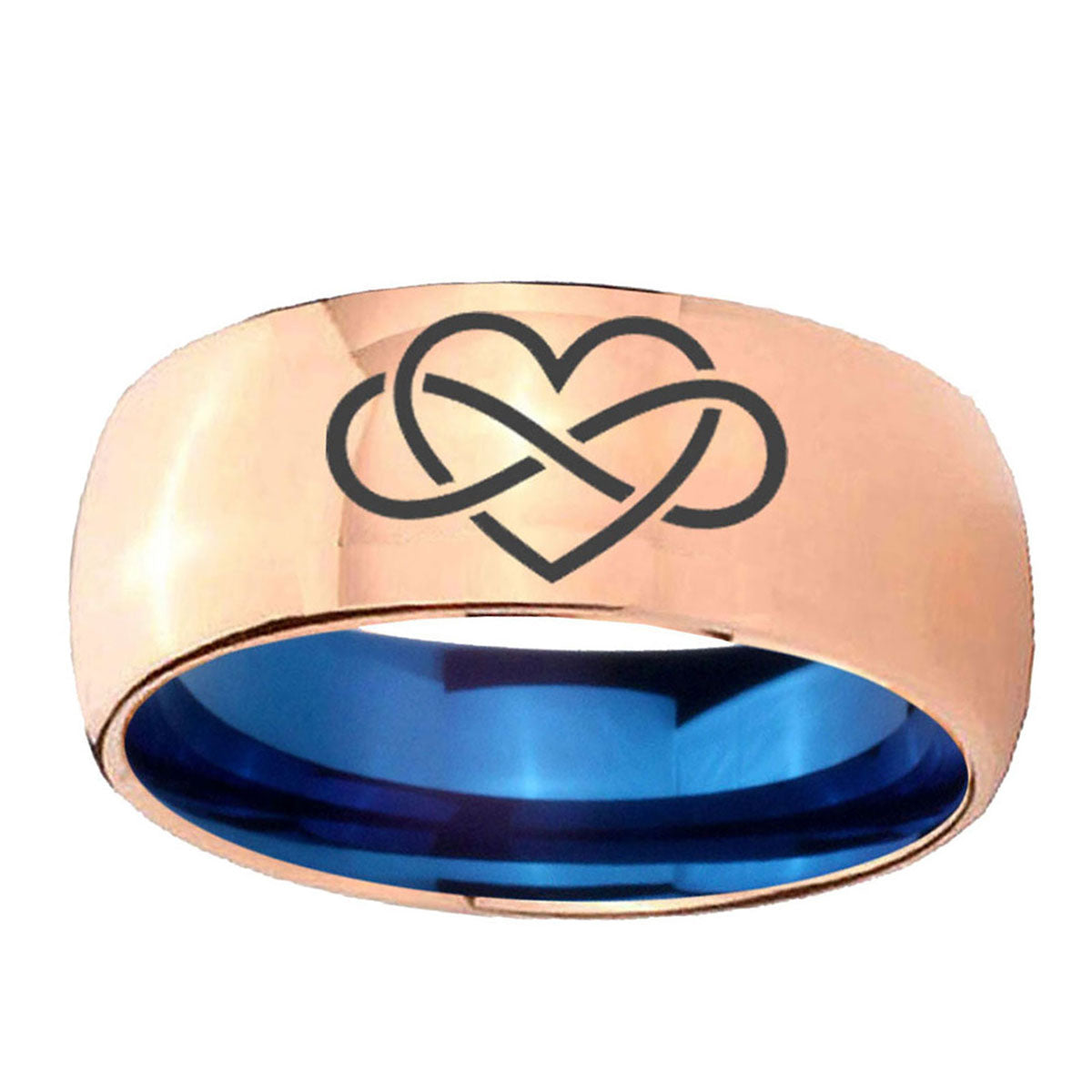 8mm Infinity Love Dome Rose Gold Blue Tungsten Carbide Wedding Ring