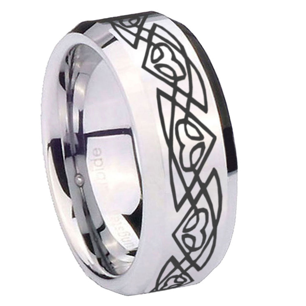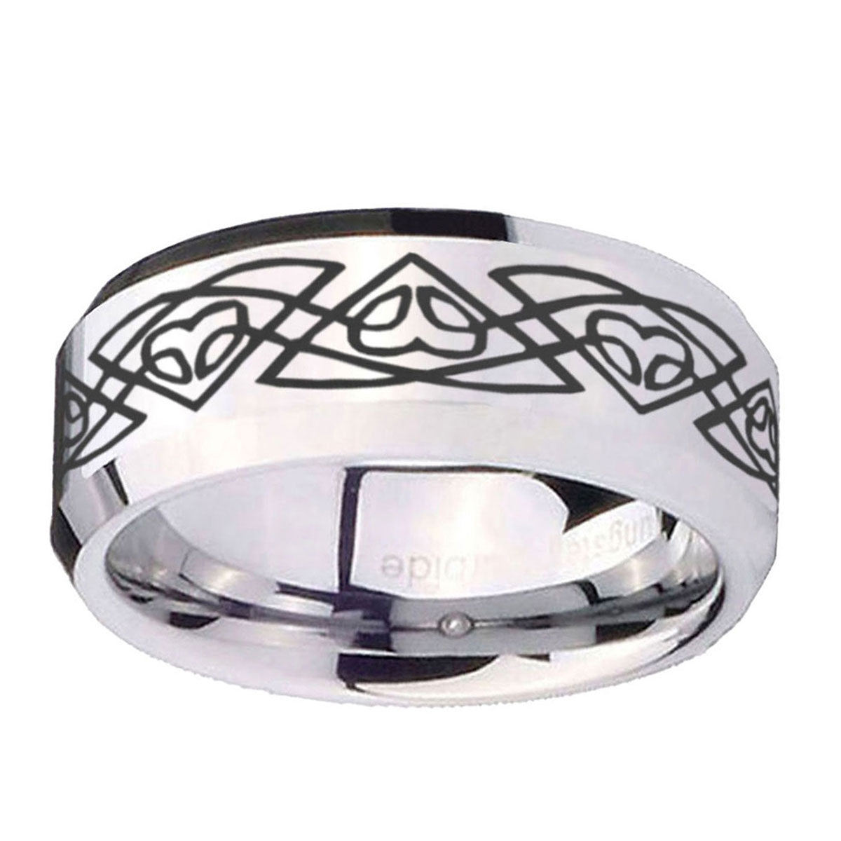 10mm Celtic Braided Beveled Edges Silver Tungsten Carbide Mens Ring Engraved