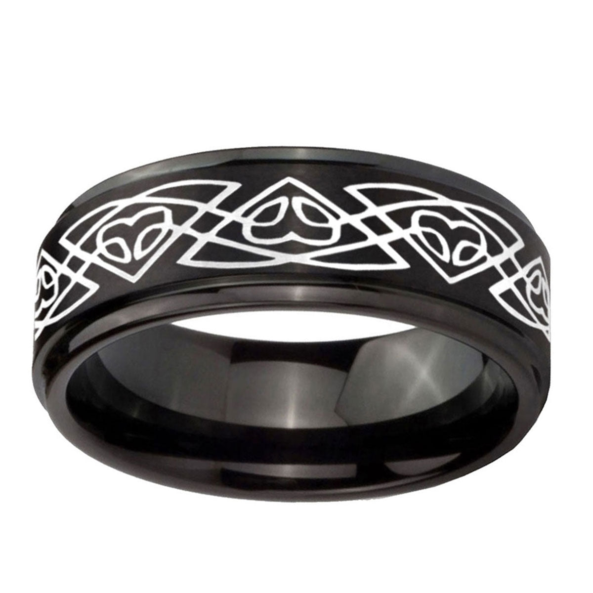 10mm Celtic Braided Step Edges Brush Black Tungsten Men's Promise Rings