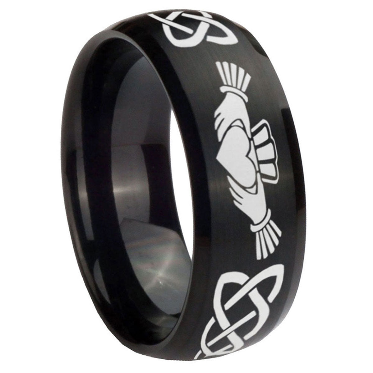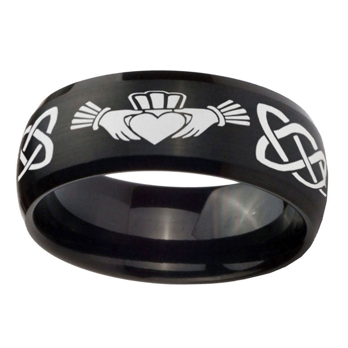 Introuding 5, 8mm Irish Claddagh Dome Brush Black Tungsten Carbide Mens Anniversary Ring . Offer in both 5mm and 8mm band width brush black plated fnished from size 4 to 14