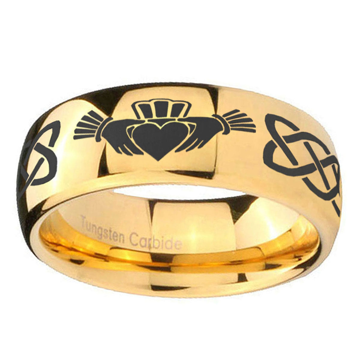 5, 8mm Irish Claddagh Dome Gold Tungsten Carbide Custom Mens Ring