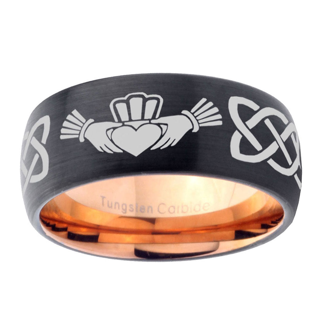 10mm Irish Claddagh Dome Tungsten Rose Gold Custom Ring for Men