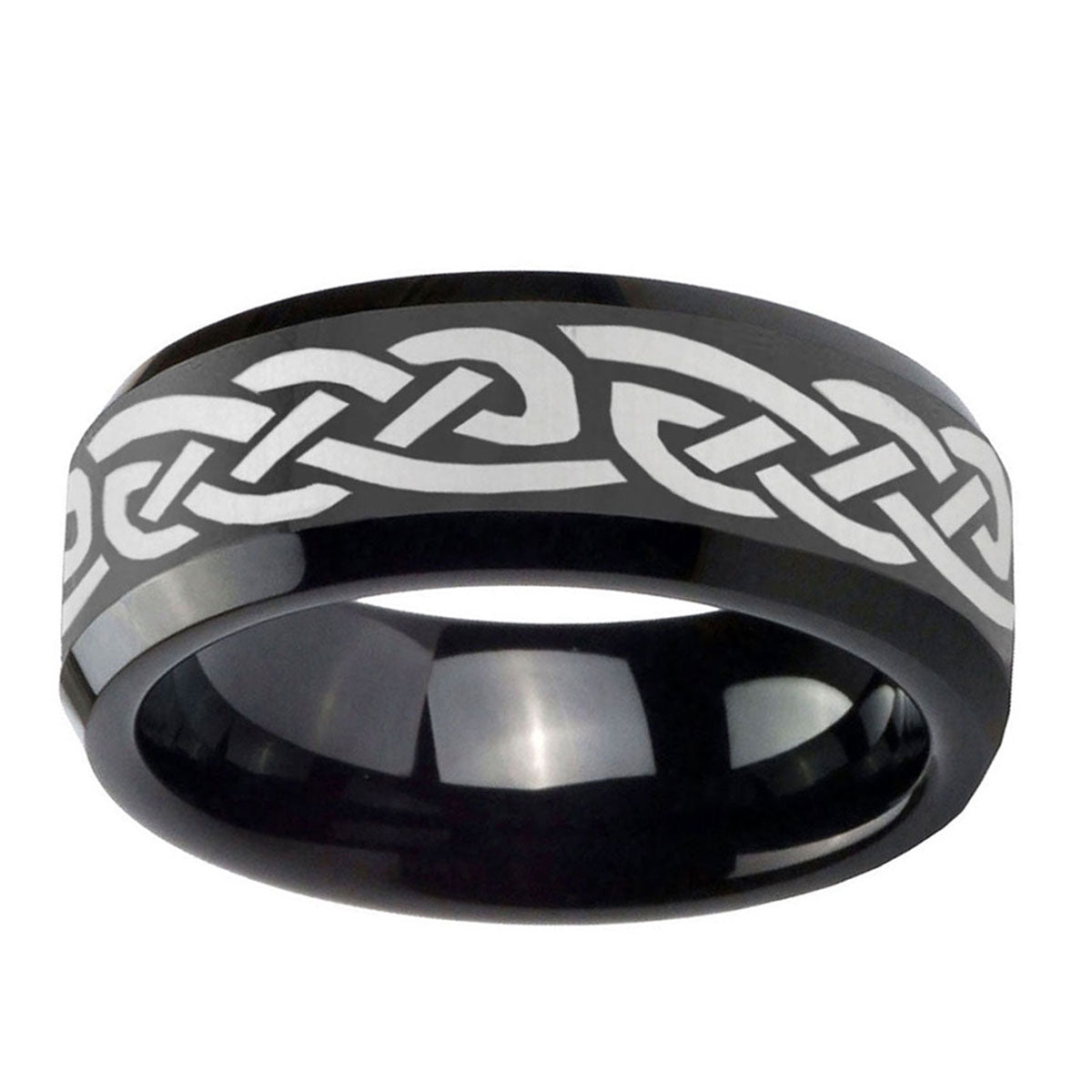 Celebrate with the 10mm Celtic Knot Infinity Love Beveled Edges Black Tungsten Carbide Men's Wedding Band. This black tungsten ring with Celtic knot infinity love design is perfect for weddings.