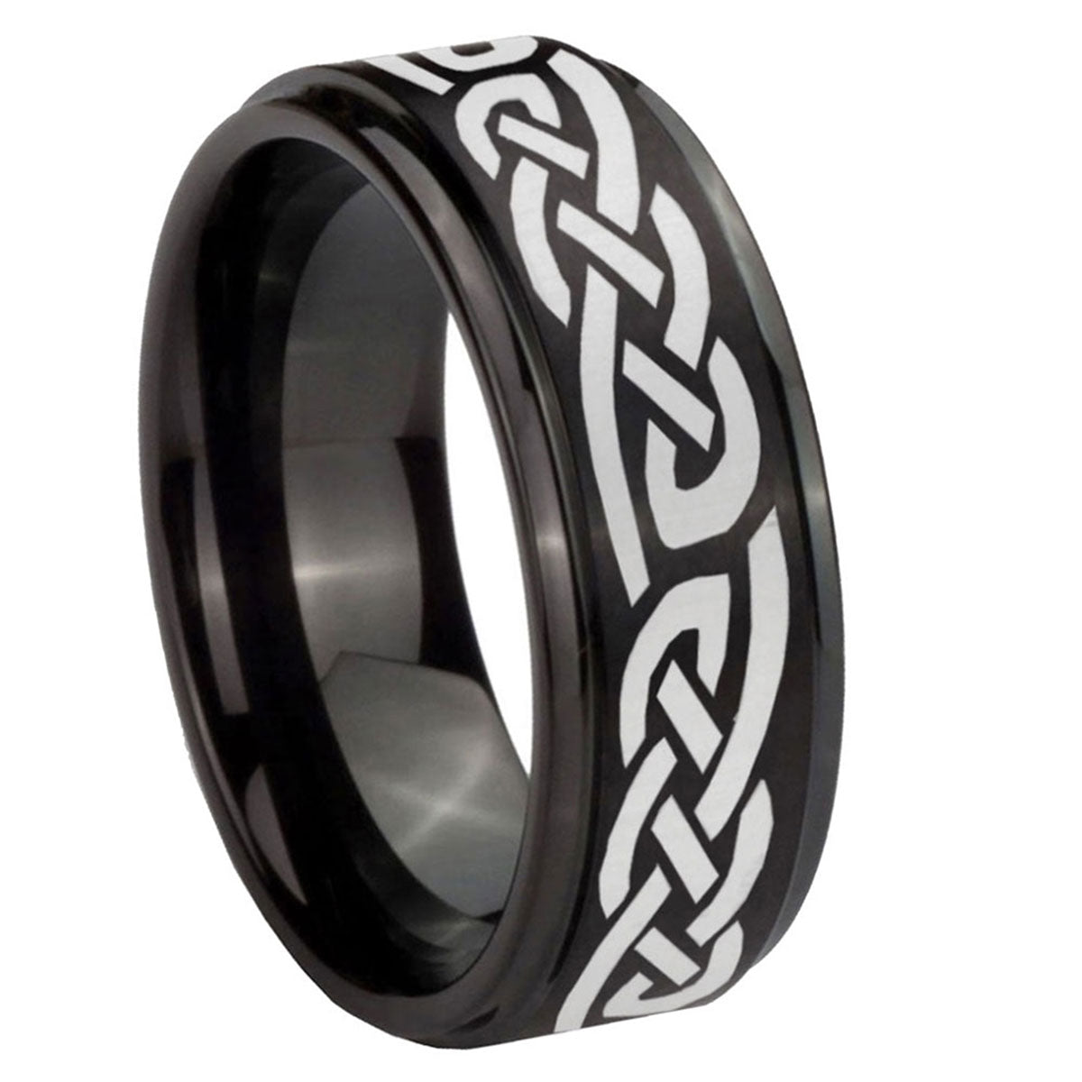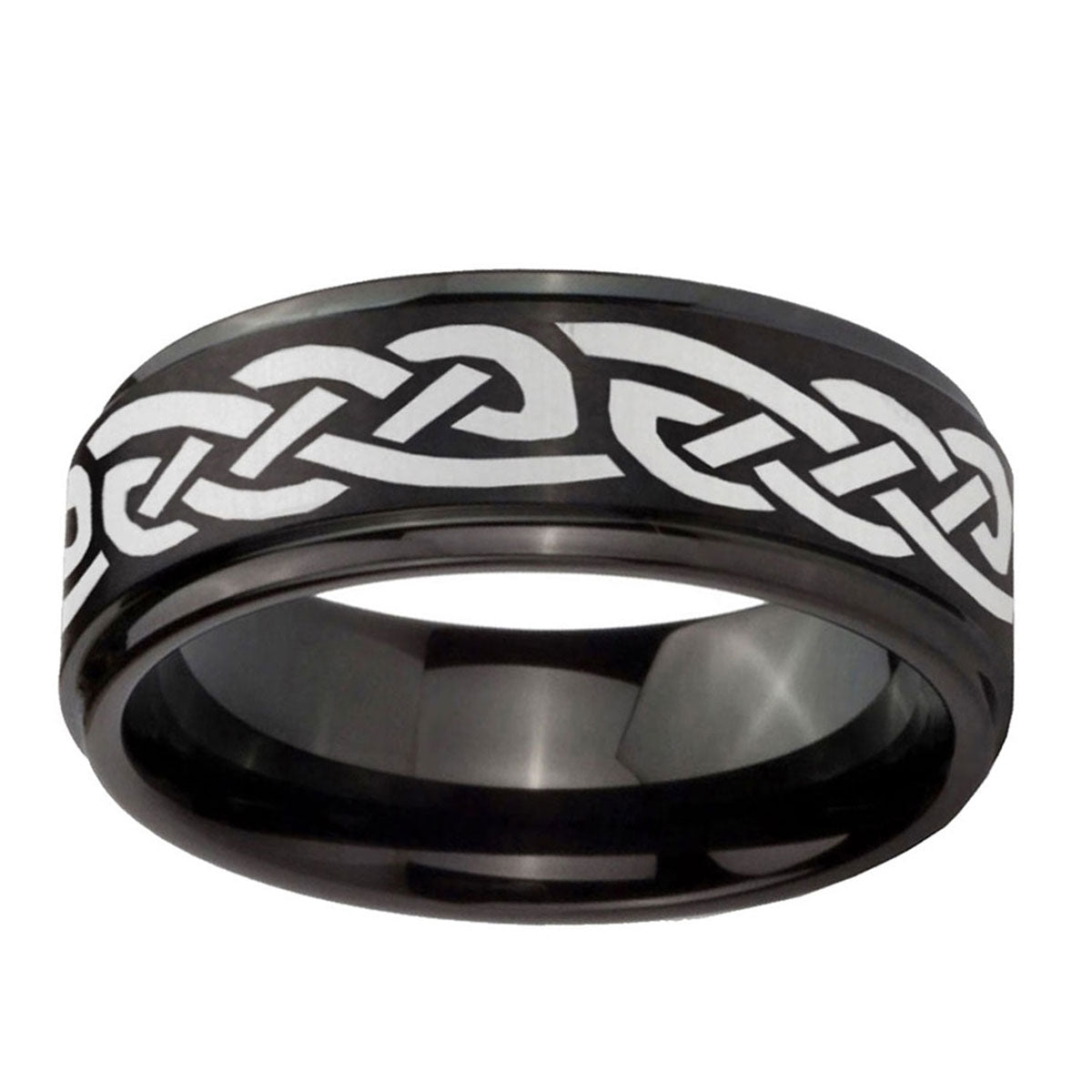 10mm Celtic Knot Infinity Love Step Edges Brush Black Tungsten Men's Promise Rings