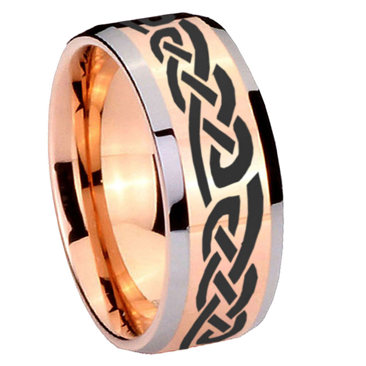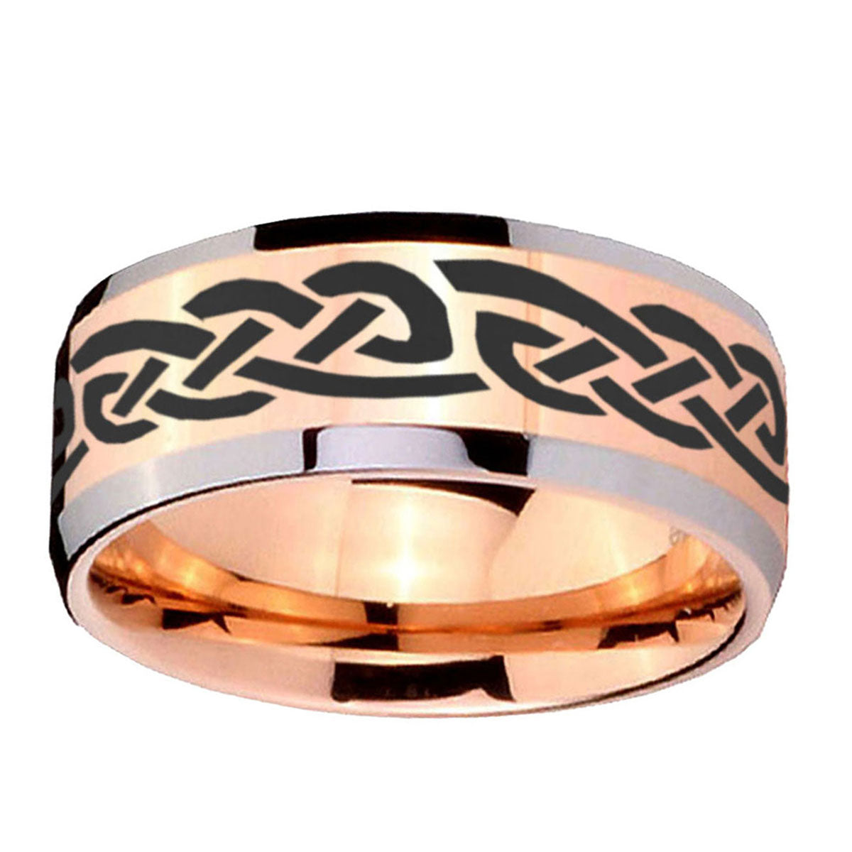 10mm Celtic Knot Infinity Love Beveled Edges Rose Gold Tungsten Wedding Bands Ring