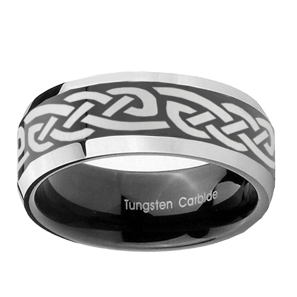 10mm Celtic Knot Infinity Love Beveled Glossy Black 2 Tone Tungsten Engagement Ring