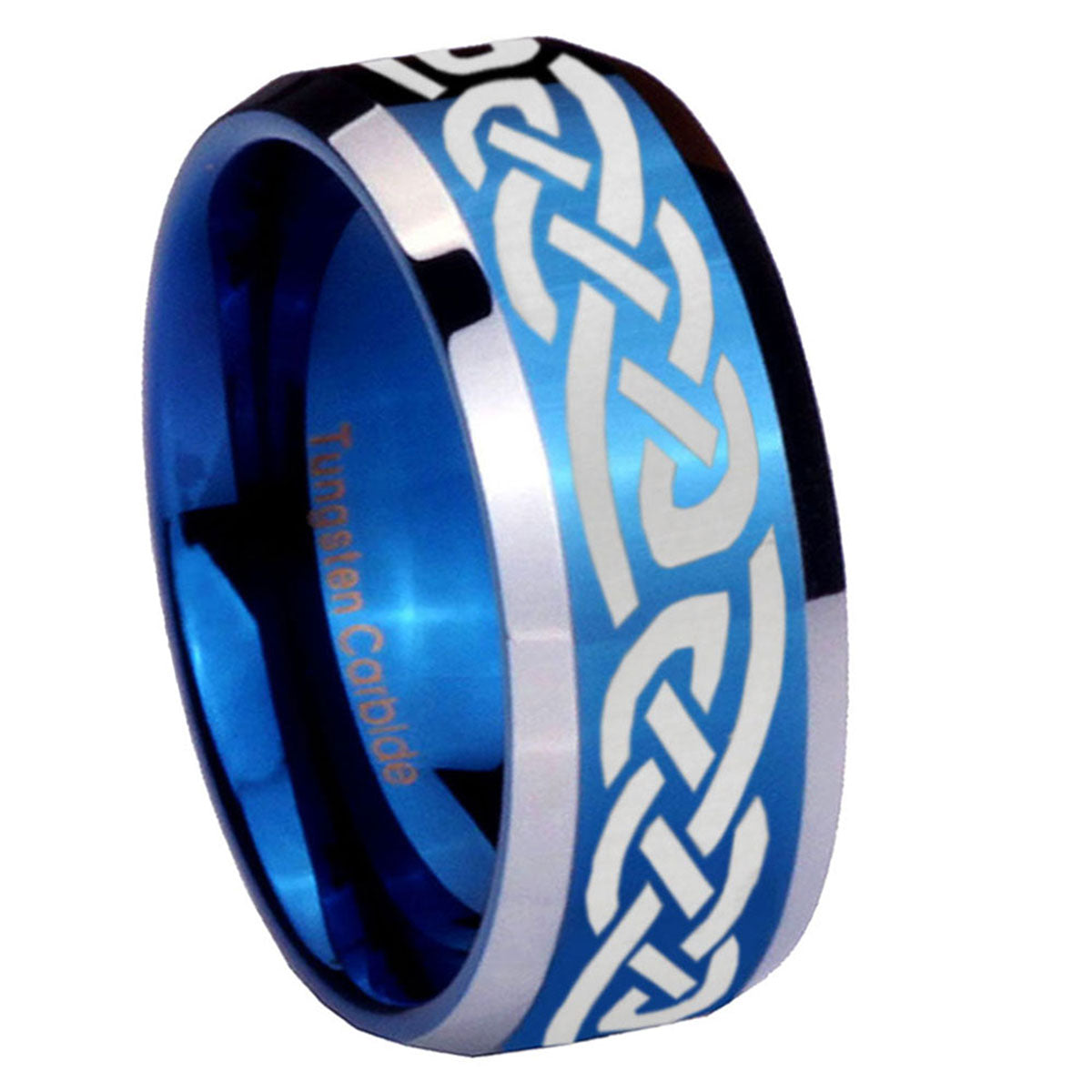 10mm Celtic Knot Infinity Love Beveled Edges Blue 2 Tone Tungsten Men's Engagement Ring
