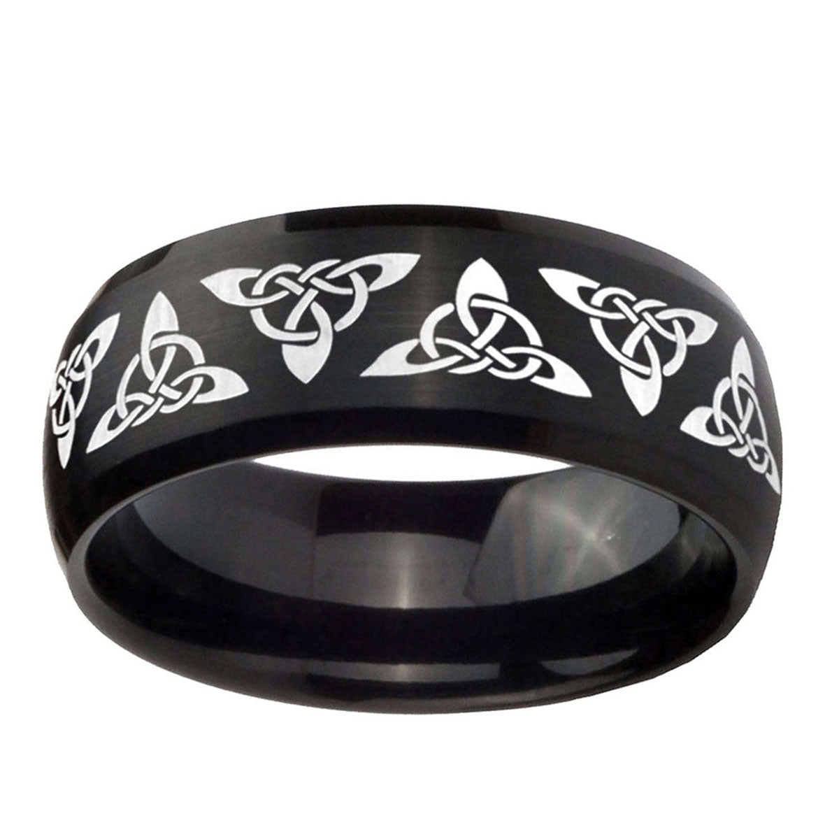 Propose with the 10mm Celtic Knot Dome Brush Black Tungsten Carbide Men's Engagement Band. This brushed black dome ring with Celtic knot design is ideal for engagements.