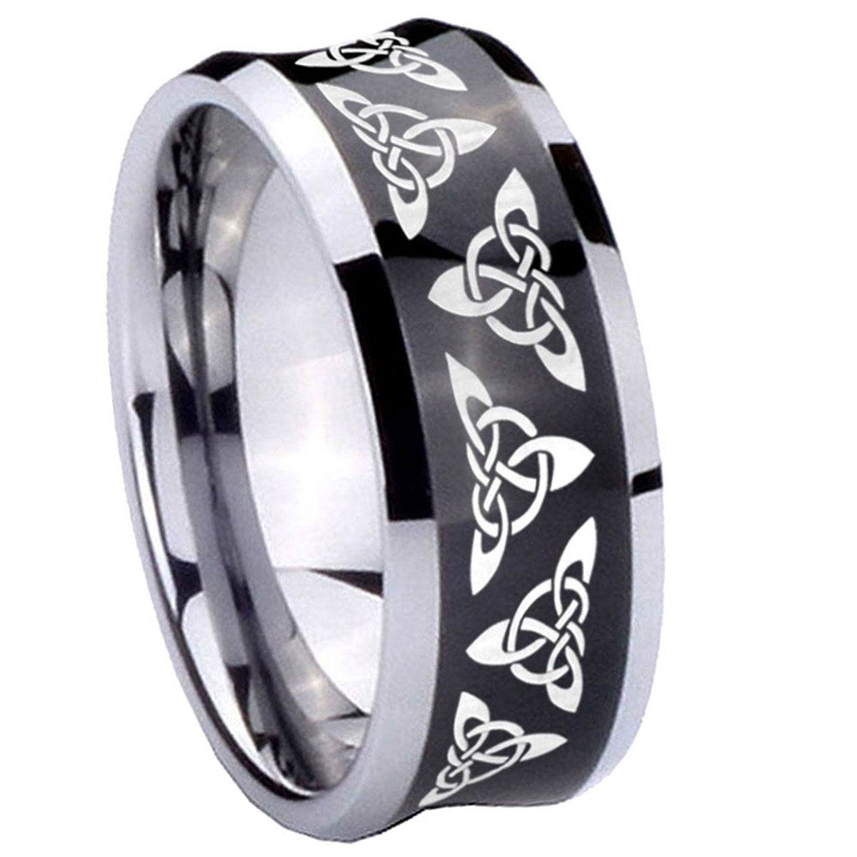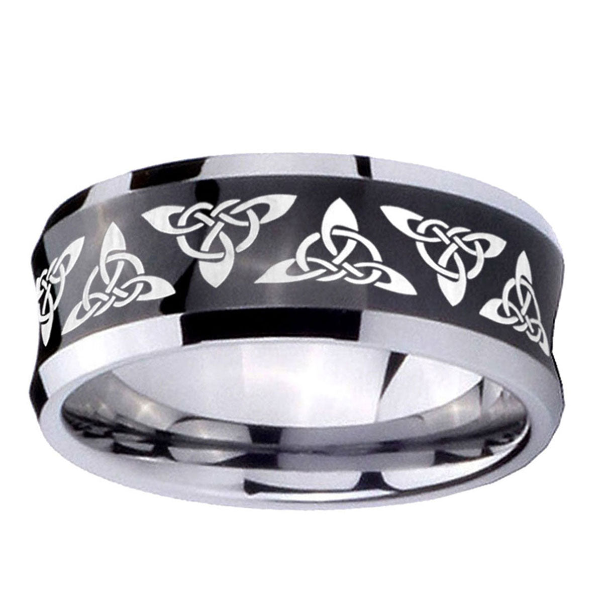 Propose with the 10mm Celtic Knot Concave Black Tungsten Carbide Men's Engagement Band. This concave black tungsten ring with Celtic knot design is ideal for engagements.