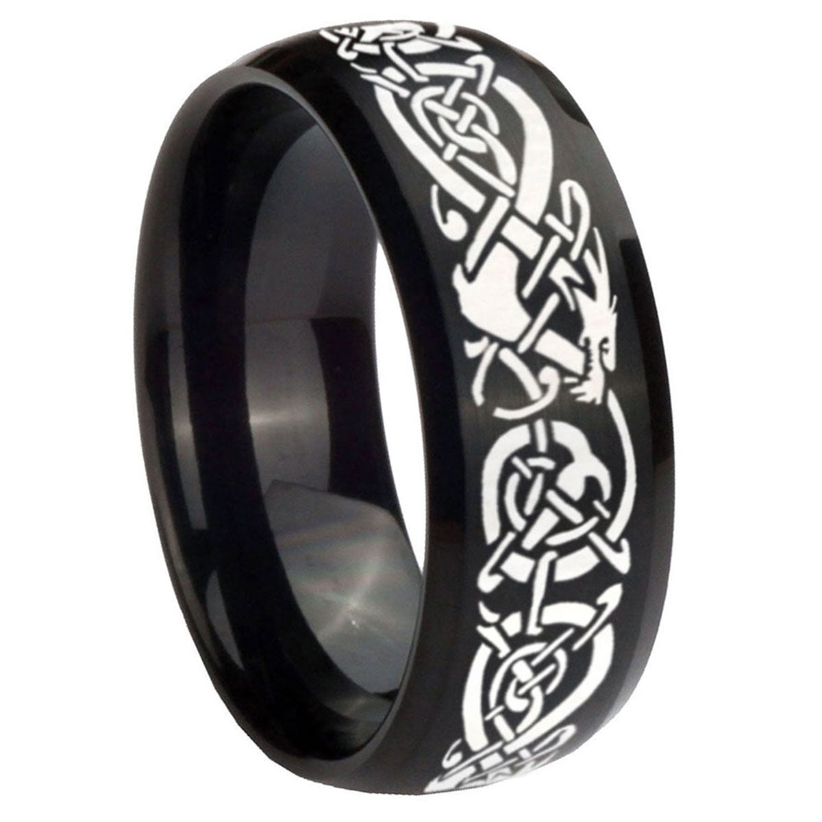 10mm Celtic Knot Dragon Dome Brush Black Tungsten Carbide Mens Engagement Ring