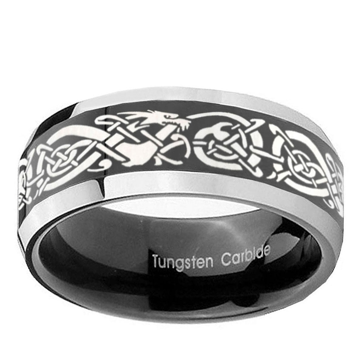 Introuding 5, 8mm Celtic Knot Dragon Beveled Glossy Black 2 Tone Tungsten Men's Wedding Band . Offer in both 5mm and 8mm band width shiny black pated two tone finished from size 4 to 14