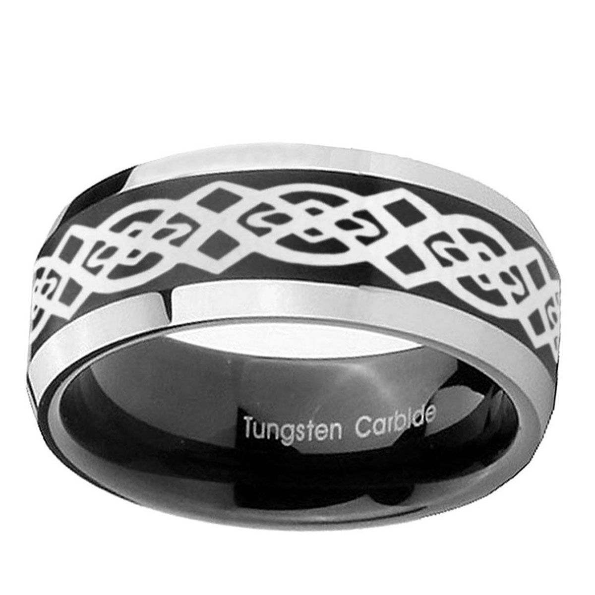 10mm Celtic Knot Beveled Edges Brush Black 2 Tone Tungsten Custom Mens Ring