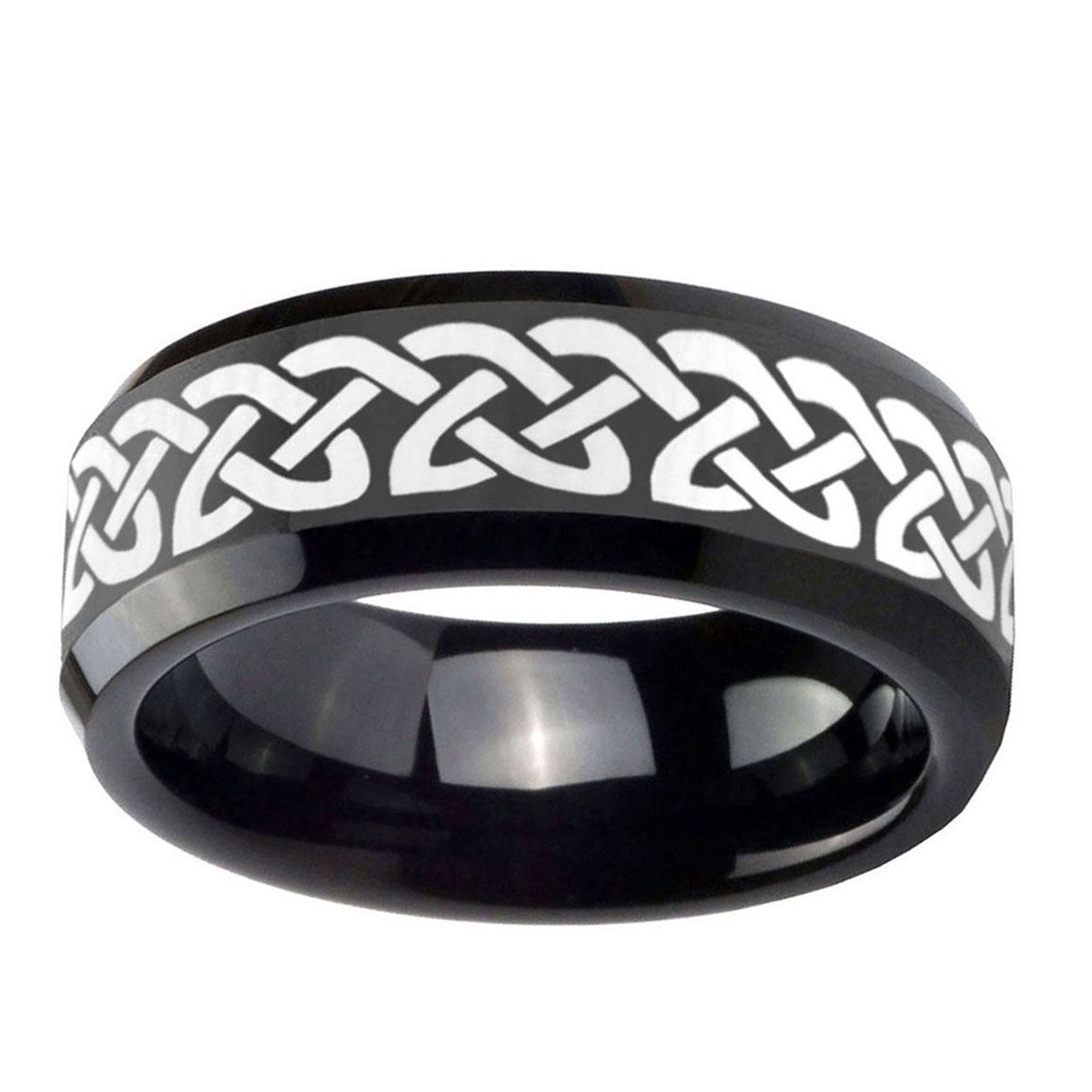 Celebrate with the 10mm Celtic Knot Love Beveled Edges Black Tungsten Carbide Men's Wedding Band. This black tungsten ring with Celtic knot love design is perfect for weddings.