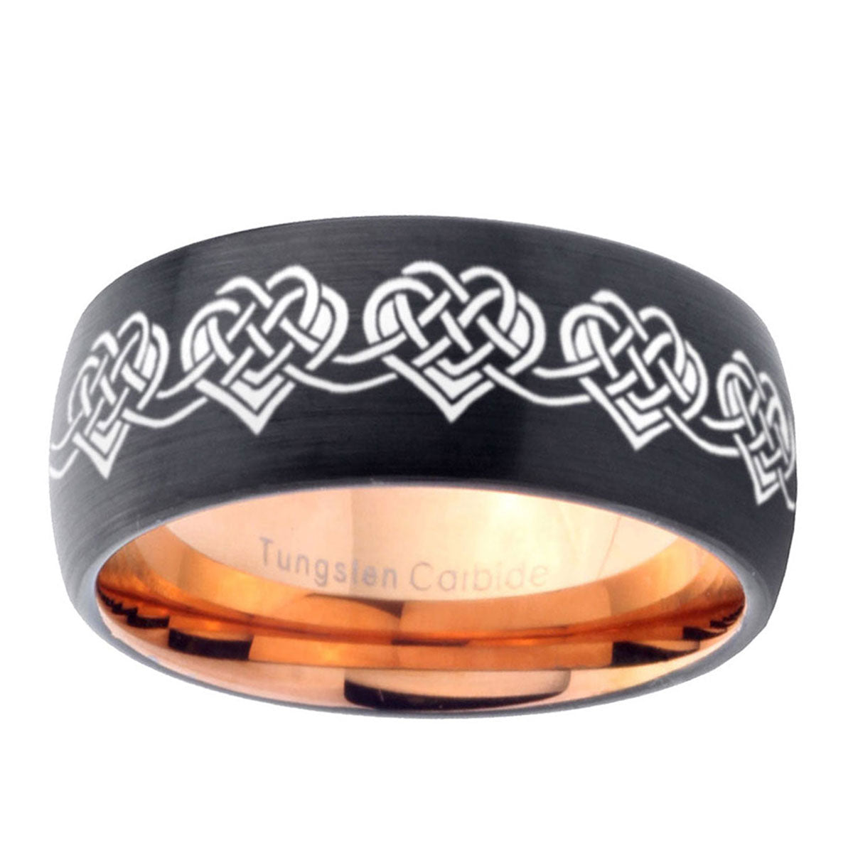 10mm Celtic Knot Heart Dome Tungsten Rose Gold Custom Ring for Men