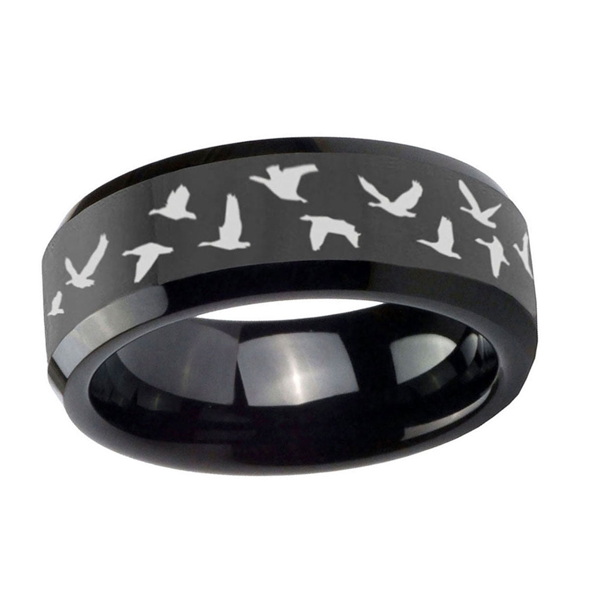 10mm Flying Geese Hunting Beveled Edges Black Tungsten Carbide Men's Wedding Band